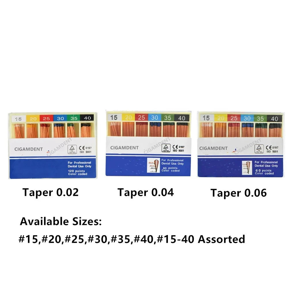 Premium gutta percha points set - 5 boxes, 120 pcs, size 15-40, taper 0.02/0.04/0.06)