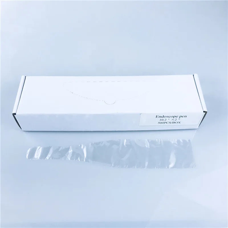 Protective Film for Endoscope - Reduces cross-contamination, saves cleaning time. Top-quality hygiene for dental practice. Fits most intraoral cameras. Made of high-quality plastic material, 26cm in length. Can also be used on Coronal Polishing Handpiece. Get 500pcs in a box.