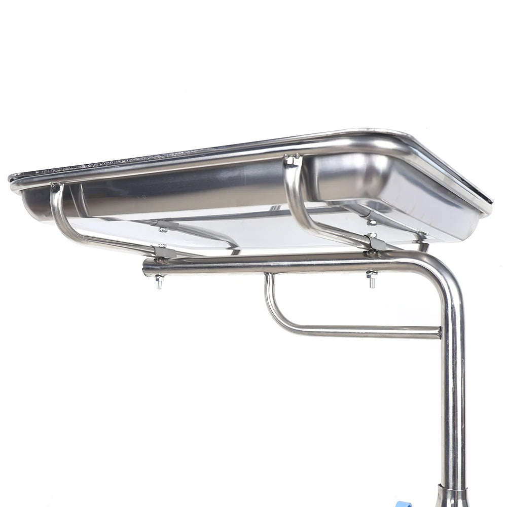 Elevate your Dental facility with this Assembled 45*35cm Stainless Steel Tray Stand Rolling Cart. Made of high-quality stainless steel, featuring a smooth surface, adjustable height, stable base, and silent rubber wheels.