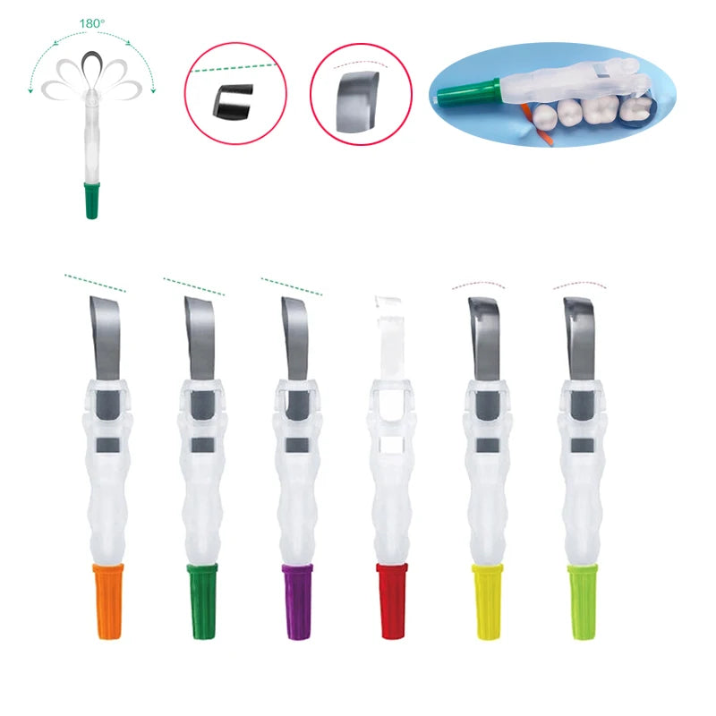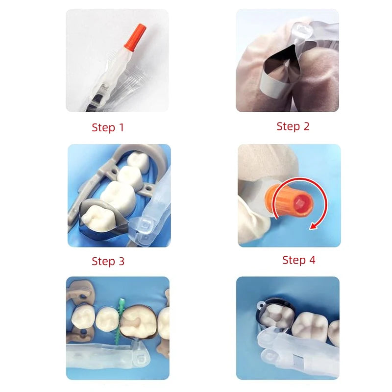 Transform your dental procedure with the Sectional Dental Matrix System Contoured. This innovative system features adjustable 180° crown matrix for precise tooth positioning. The single-use, pre-assembled band and retainer simplify procedures with easier placement and enhanced visibility. Its narrow neck design allows for greater access, and the smooth tightening mechanism ensuring the perfect fit. Ideal for class II filling restoration and postscore restoration, eliminating overhang.