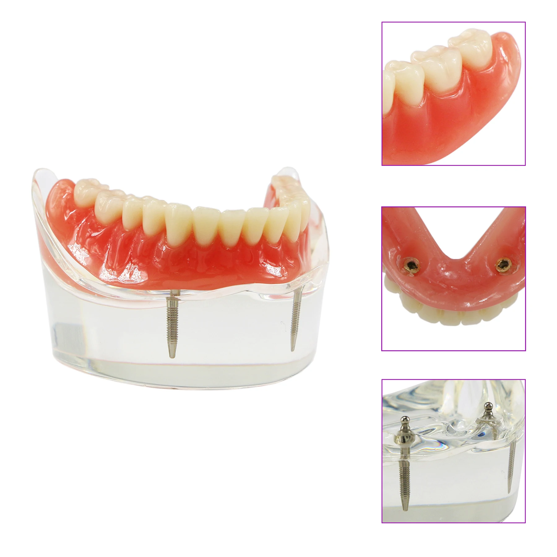 Explore the M6002 Dental Model with Clear Acrylic Lower Jaw Base to study the functioning of overdenture with 2 generic implants and removable superior overdenture by locators connection.
