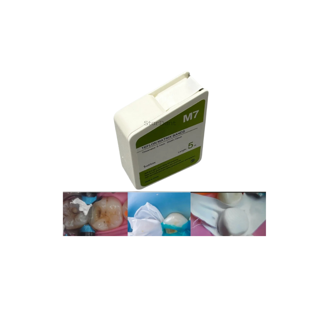 Simply place the matrix band around the tooth to create a temporary wall for composite fillings or other dental procedures. Ensure precise results and efficient work with these high-quality PTFE matrix bands.