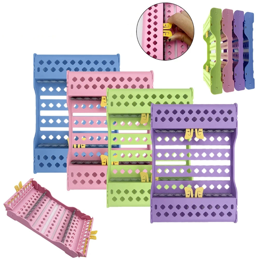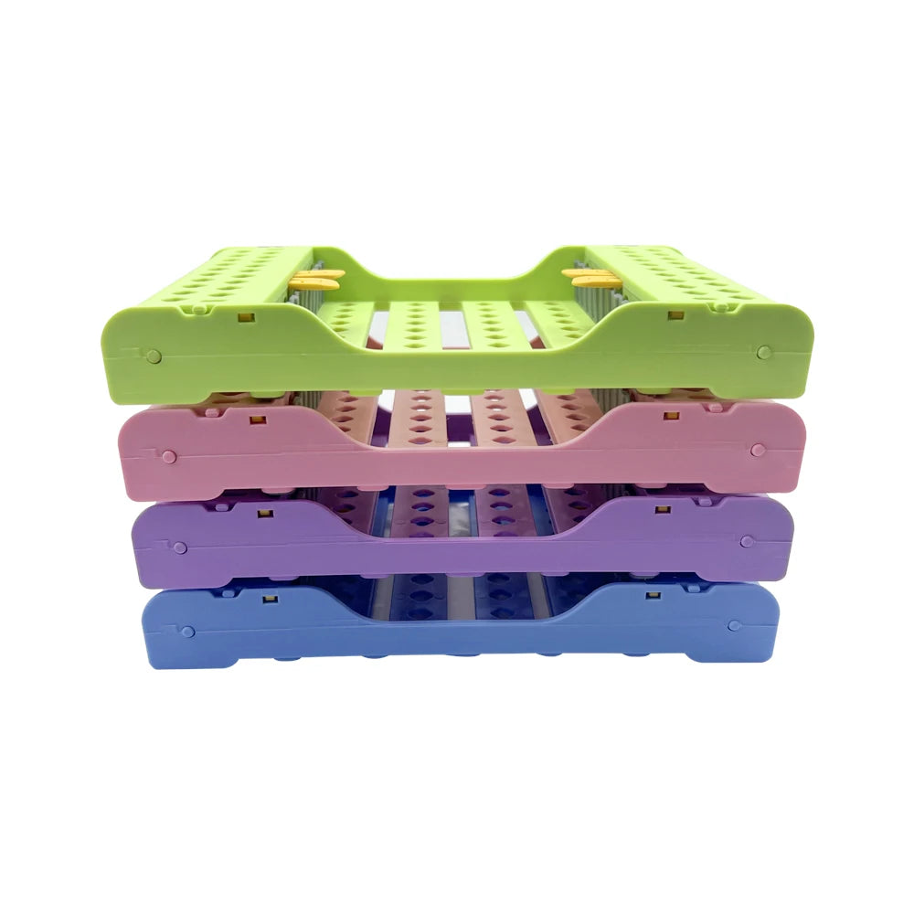 Keep your dental instruments safe and organized with this high-quality Instruments Sterilization Box Rack. Made of durable engineering plastics, this autoclavable rack is resistant to high temperatures, ensuring no deformation or fading. Conveniently sort out your tools and keep your workspace clean and tidy with this essential addition to your dental practice.