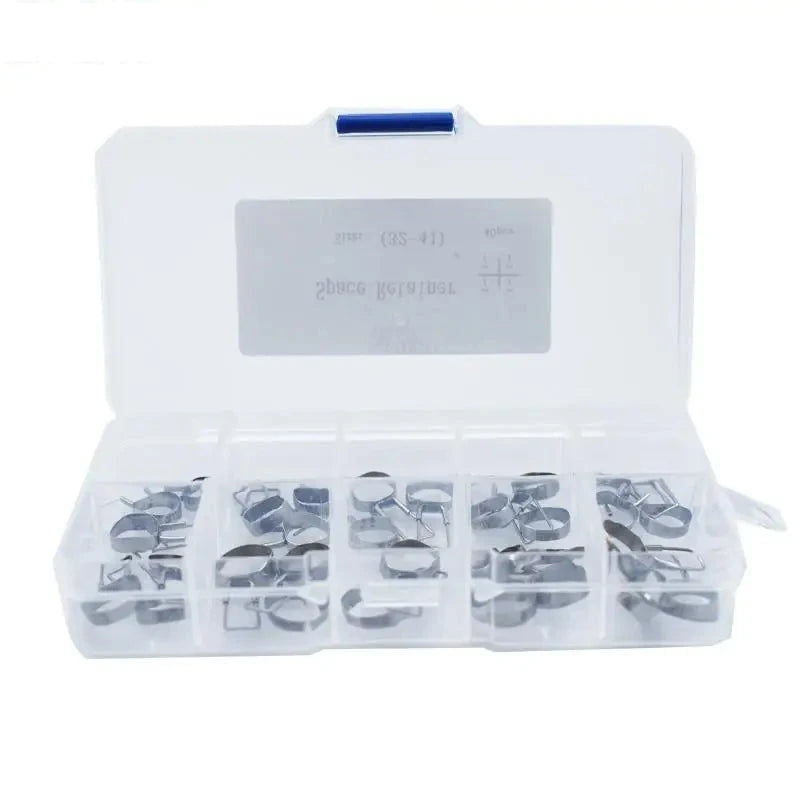 Introducing our best-selling 40Pcs Orthodontic Molar Space Maintainers Band & Loop for children! This premium dental space maintainer is designed to solve the common problem of tooth gaps in children aged 2 and above. With 40 pieces in a box, you can easily find the perfect fit for your child's teeth from size 32# to 41#. Our unique profile and medium softness provide maximum comfort and perfect teeth fitting. Plus, the flattened interproximal feature makes fitting easier and minimizes tooth separation. Don't miss out on this exclusive limited-time offer and give your child the perfect smile they deserve with our Orthodontic Molar Space Maintainer!
