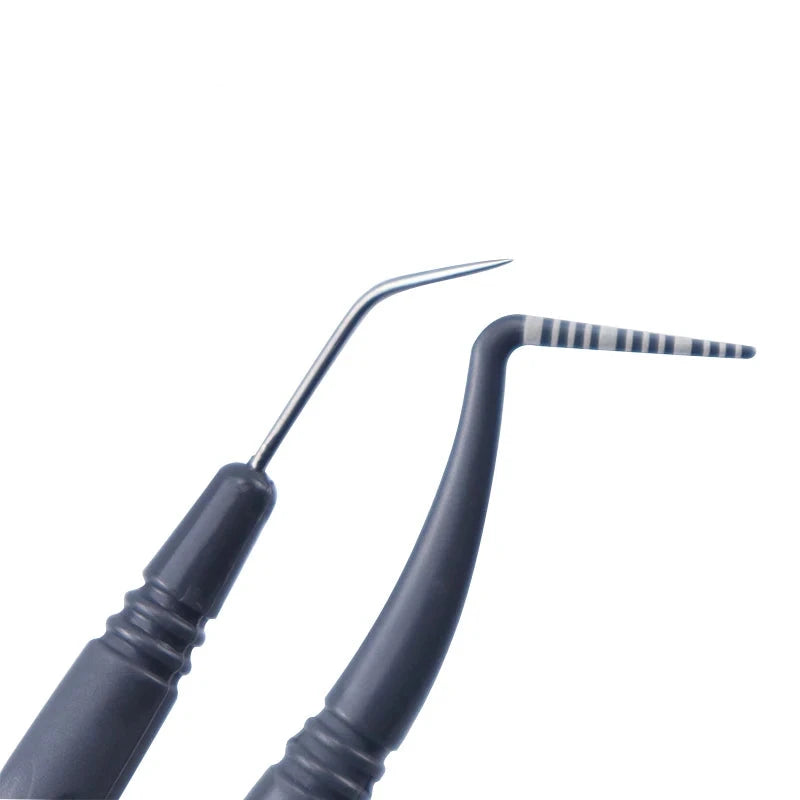 Enhance your dental hygiene with this premium 1pc Dental Periodontal Probe. Featuring a dual-ended design with metal tip for cavity detection and soft plastic probe for exploring periodontal depth. This tool is essential for thorough teeth cleaning and hygiene maintenance.