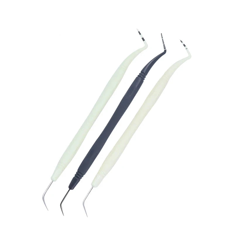 - Metal tip for cavity detection, soft plastic probe for periodontal depth exploration